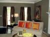 For the living room I decided to go for blue, and I made it a point of using blue backgrounds, and my other things were also to be blue based. So instead of expensive drapes, I used light blue cotton curtains with peacock blue silk, artistic design borders that matched the color of the room.